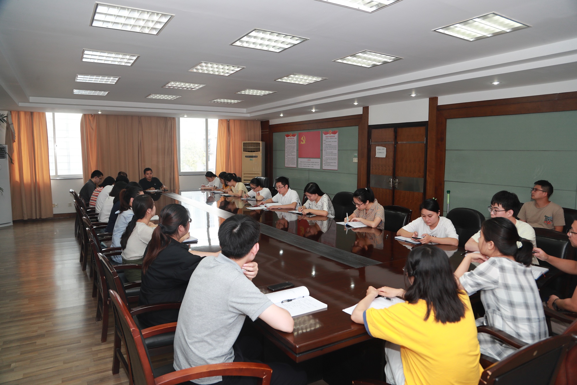 6名团员青年代表围绕活动主题,结合自身工作实际谈认识谈体会、谈打算。